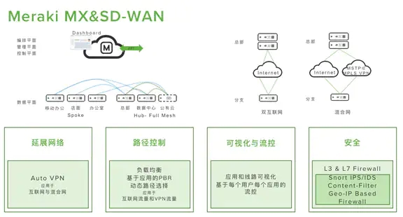 思科Meraki SD-WAN整合硬件、軟件和基于云技術的管理服務,通過SaaS云服務管理平臺,幫助企業快速完成混合部署,從小型分支靈活擴展至大型網絡,提高生產力,并降低成本。同時,思科Meraki SD-WAN的高級分析功能具有機器學習和智能路徑選擇的特性,為客戶提供端到端可視性,確保無論業務關鍵型應用程序托管在何處(SaaS、IaaS 或數據中心),都能發揮預期作用。在成本管理方面,思科Meraki SD-WAN能夠減少對MPLS的依賴,利用寬帶和光纖等低成本WAN鏈路,通過真正的零接觸部署,快速大規模配置 Meraki MX 設備,大幅降低 WAN成本。